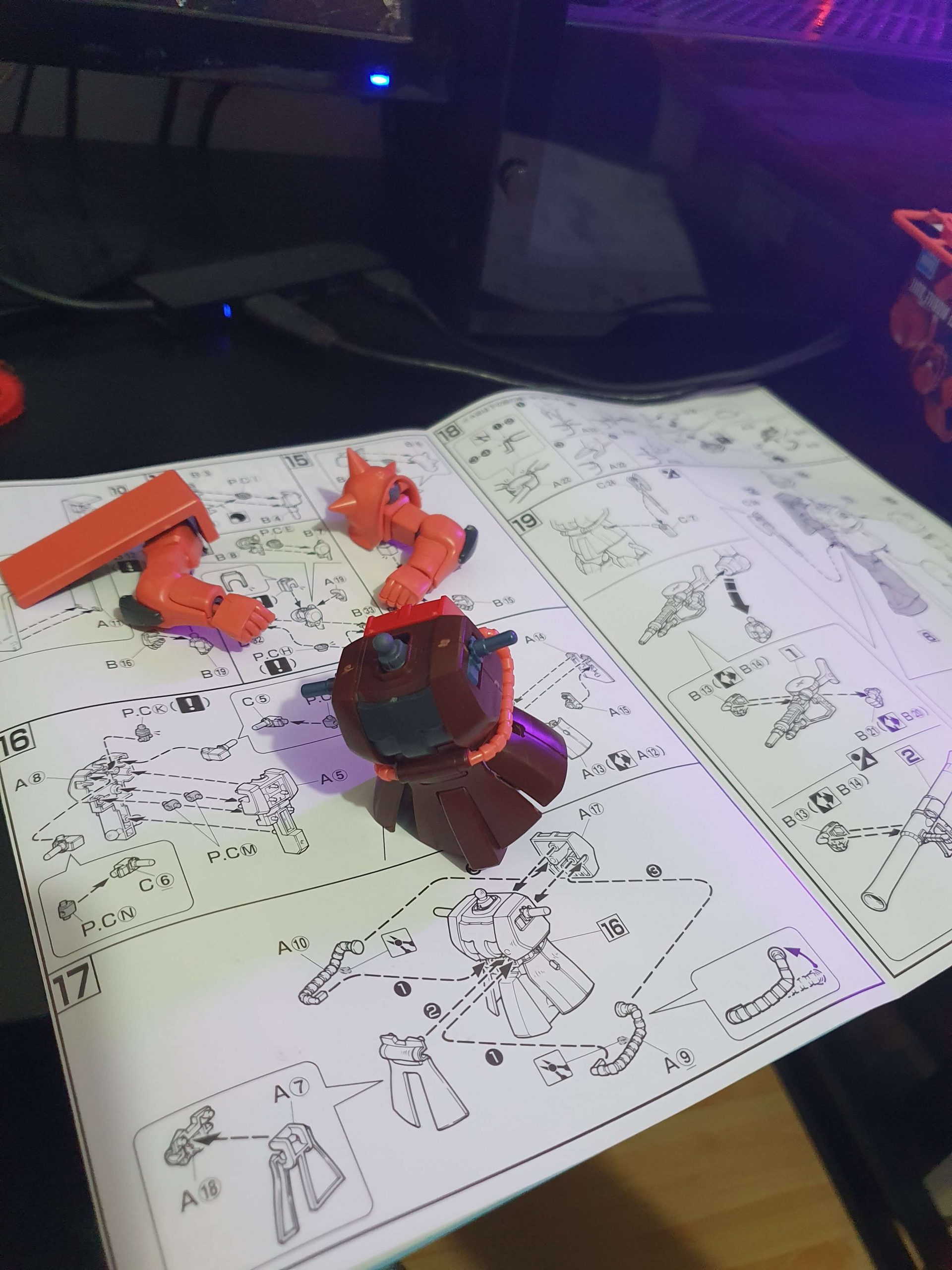 Mientras sigo alimentando la colección de modelos, me dispuse a armar algo nuevo. Así fue que, considerando que mi primer model kit fue el abuelo RX-78; sin duda tenía que obtener a su contraparte, a su némesis, el primer mobile suit con el que se enfrentaron Amuro a Char, el Zaku modificado en su característico color rojo.