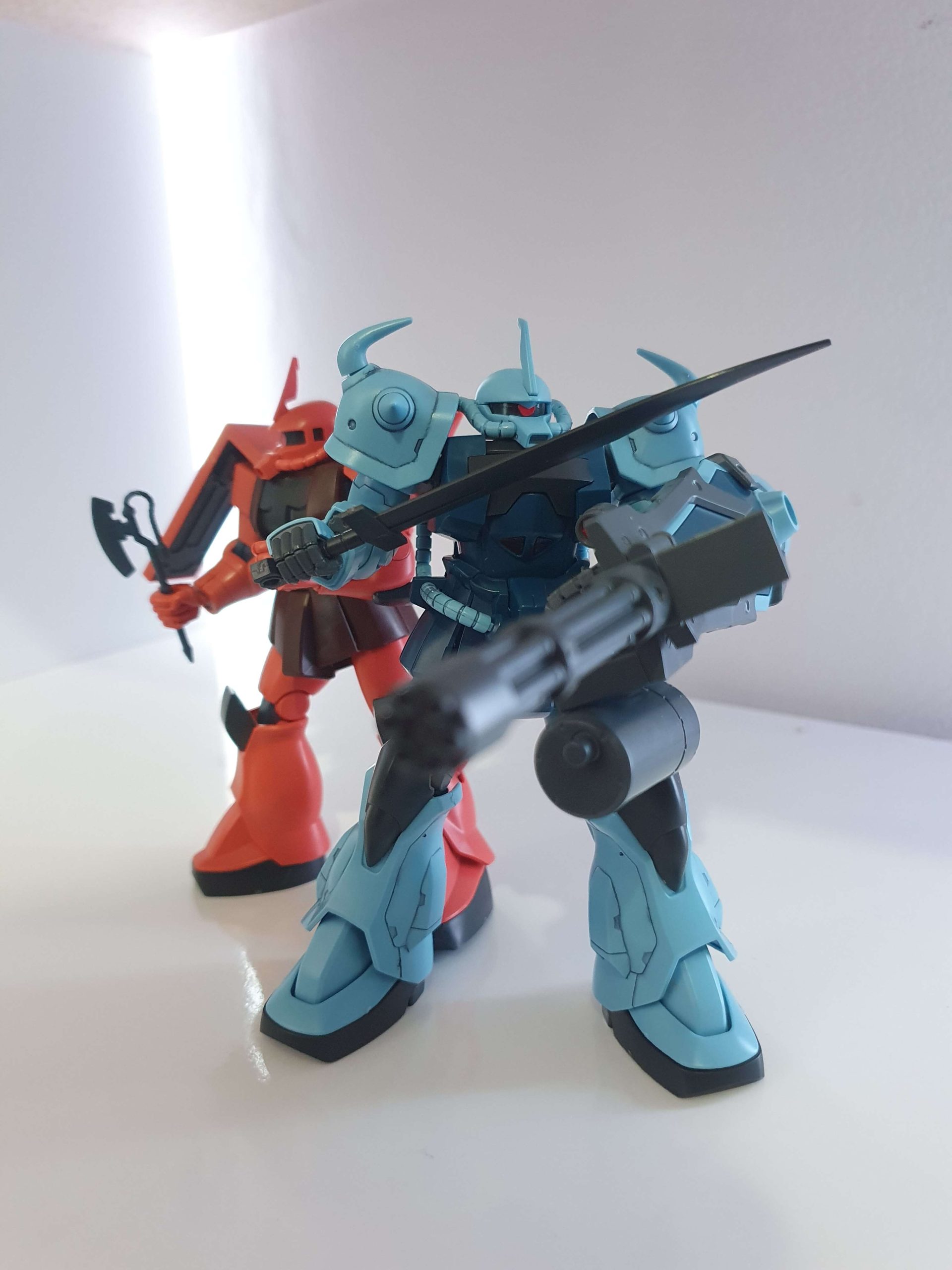 Es un kit muy divertido, además que tiene un porte que hace ver que es el hermano mayor del. Zaku, he echado un ojo y hay una versión de este mismo modelo en rojo, quizás le ponga las manos encima y así hacer crecer la supremacía roja «sieg zeon».